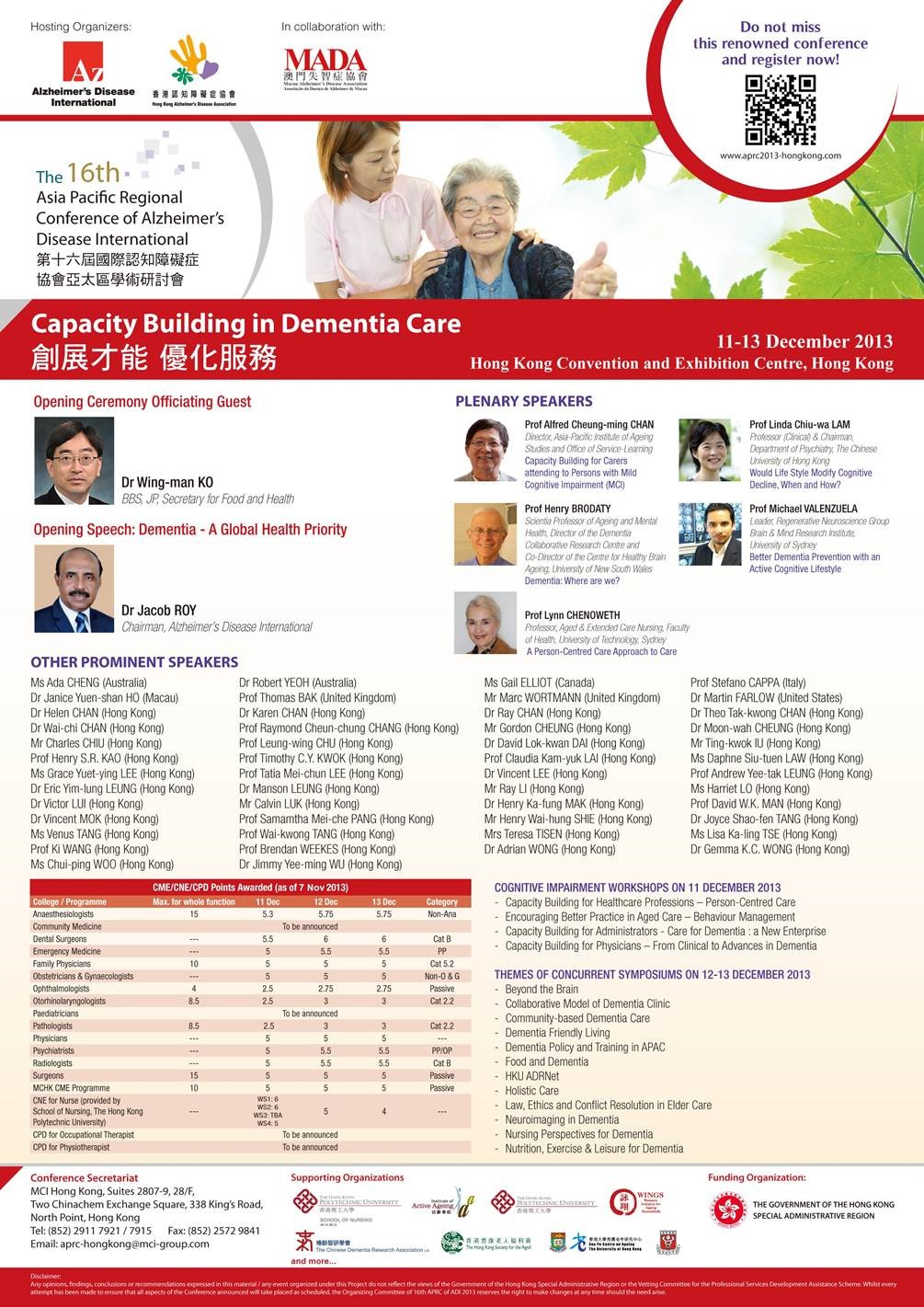 Speaker in 16th Asia Pacific Regional Conference on Alzheimer’s Disease International