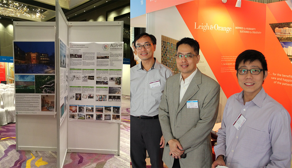 15.7.2015 Speaker of Pre-Congress Symposium titled “Accessibility, Design for All” & Poster Presentation “AUAHK Universal Accessibility Award Scheme” for 11th World Congress Design & Health held in Hong Kong |