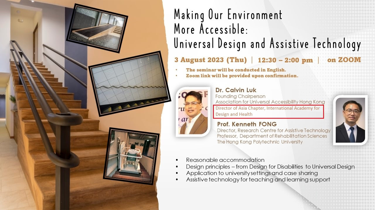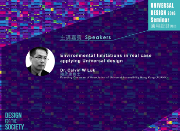 17.11.2016 Speaker for “Universal Design 2016 Seminar: Design for Society” , School of Design Alumni Association, Hong Kong Polytechnic University - “Environmental limitations in real life application of universal design”
