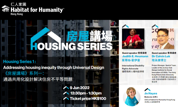 9.6.2022 2022 Habitat for Humanity Hong Kong Housing Series 1 “Addressing housing inequity through Universal Design” 香港仁人家園《房屋講場》系列一:通過共用化設計解決住房不平等問題