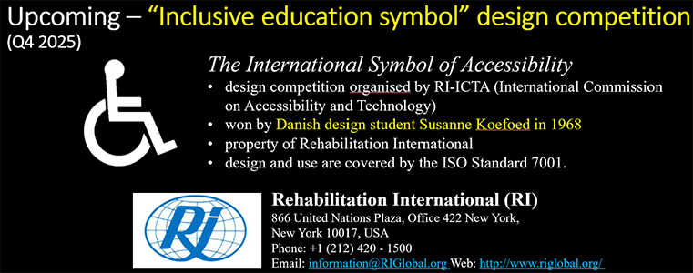 15 September - 15 November 2025 Rehabilitation International “Inclusive Education Symbol” Design Competition