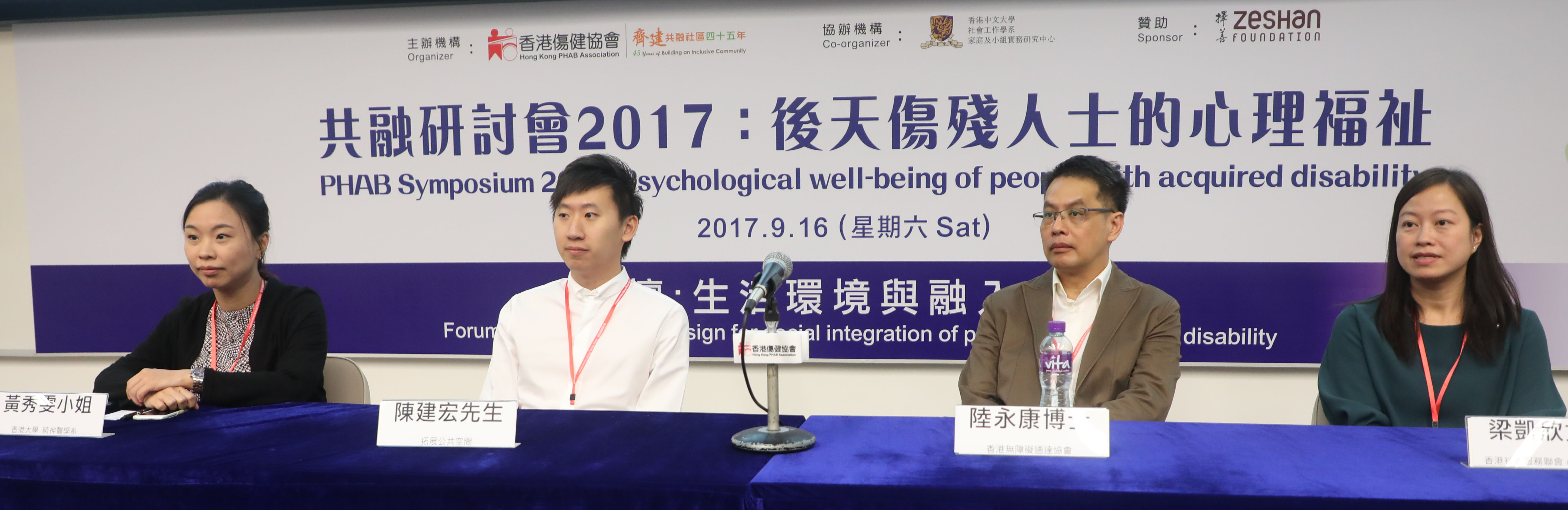 16.09.2017 speaker for HK PHAB Symposium 2017 “Psychological well-being of people with acquired disabilities” 《如何在都市化的香港推行通用設計》