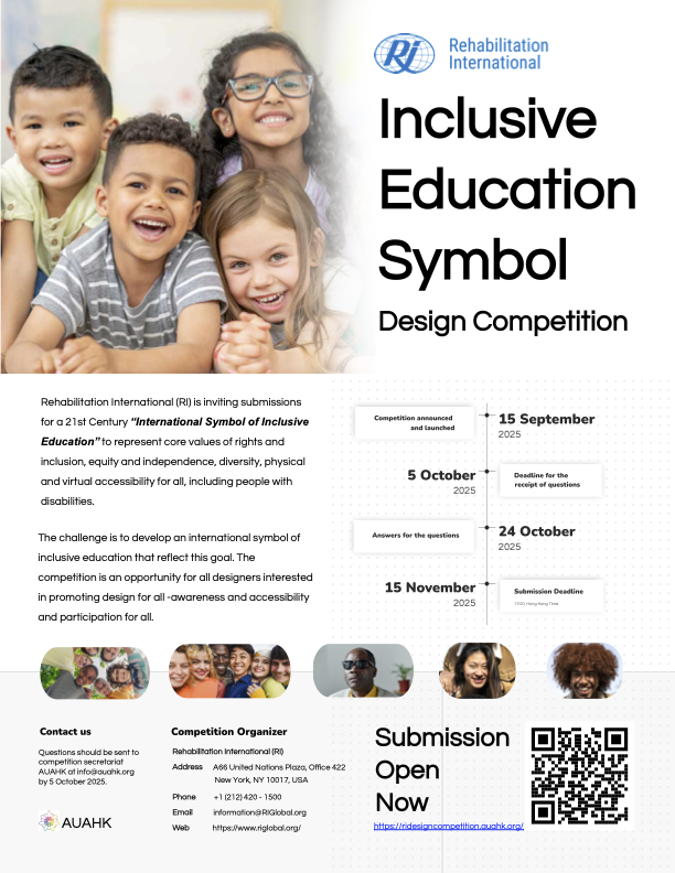 15 September - 15 November 2025 Rehabilitation International “Inclusive Education Symbol” Design Competition